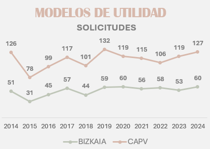 Según se recoge en el último informe BaBesTu, sobre Propiedad Industrial en Bizkaia y la CAPV durante el 2024, Bizkaia concentra casi la mitad de las solicitudes de modelos de utilidad registradas en Euskadi, con 60 de las 127 presentadas en la CAPV. Destaca el equilibrio entre empresas y particulares en las solicitudes, aunque las concesiones descienden de forma significativa, especialmente en ámbitos de ingeniería mecánica y civil.