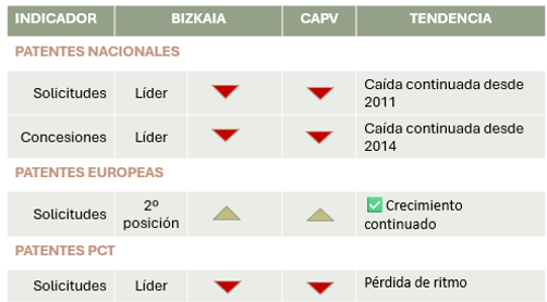 En contraste, las solicitudes de patentes internacionales PCT han sufrido una pérdida de ritmo, aun así, Bizkaia mantiene un papel relevante, y las empresas representan el 68,9 % de las solicitudes en la CAPV.